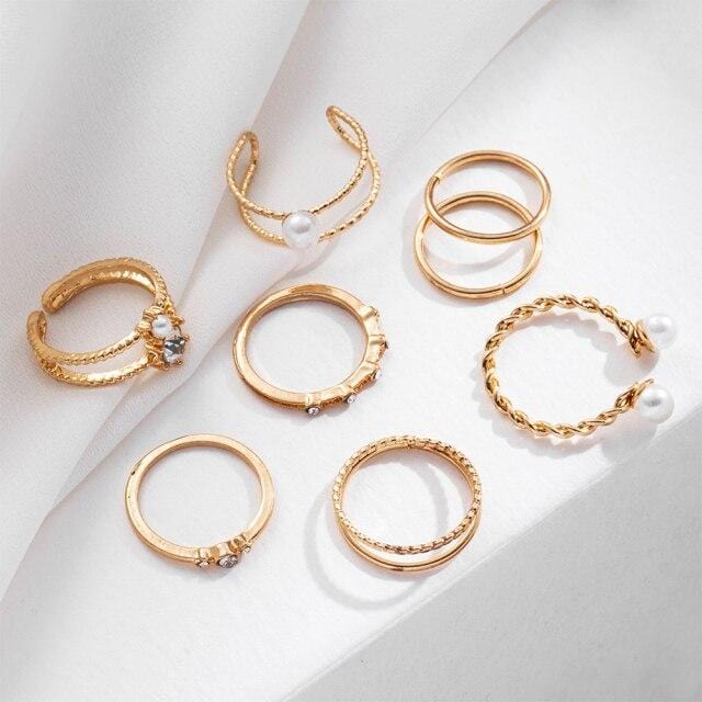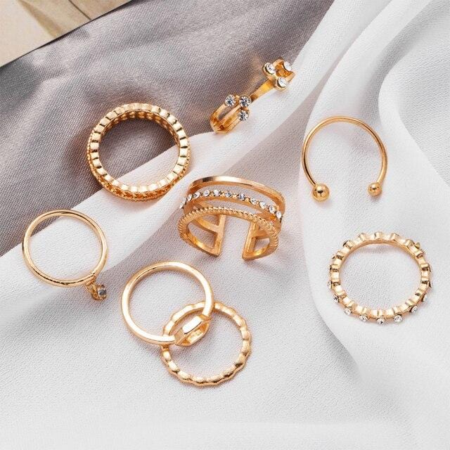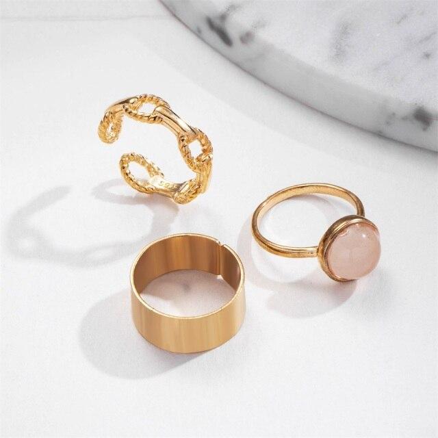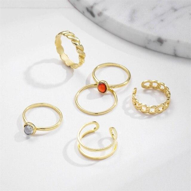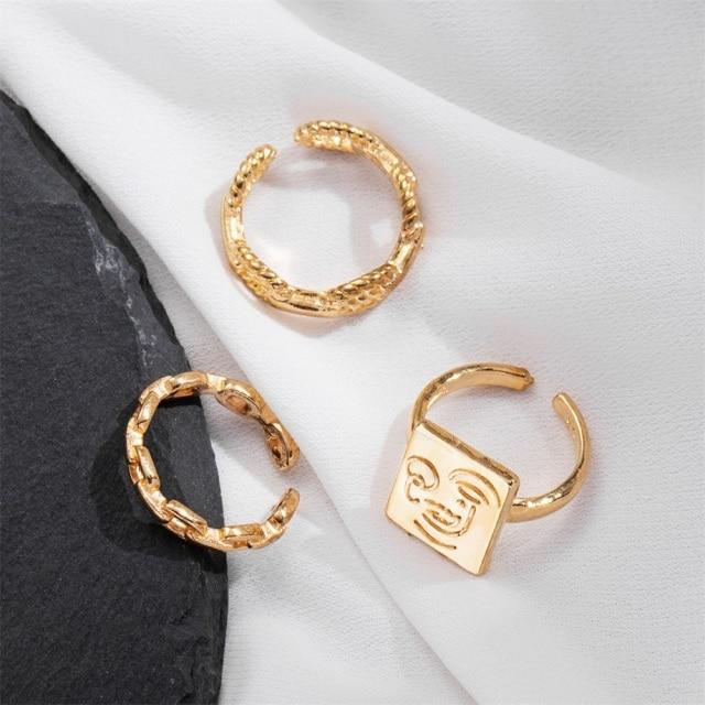 FNIO Punk Gold Color Wide Chain Rings Set For Women Girls Fashion Finger Thin Rings Gift 2021 Female Knuckle Jewelry Party