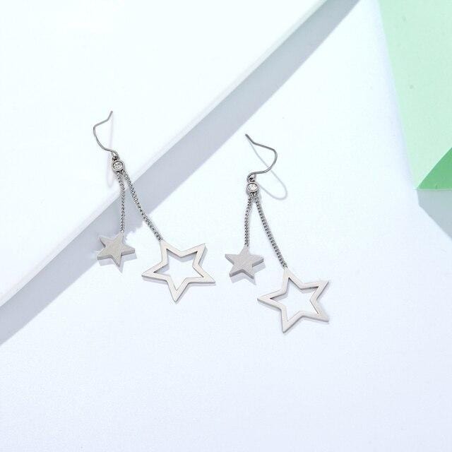 Fine Jewelry Hook Style Zircon And Two Stars Woman Drop Earring Lovely Fashion Long Earring Girl Stainless Steel Golden Earring