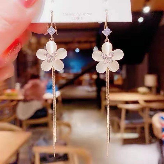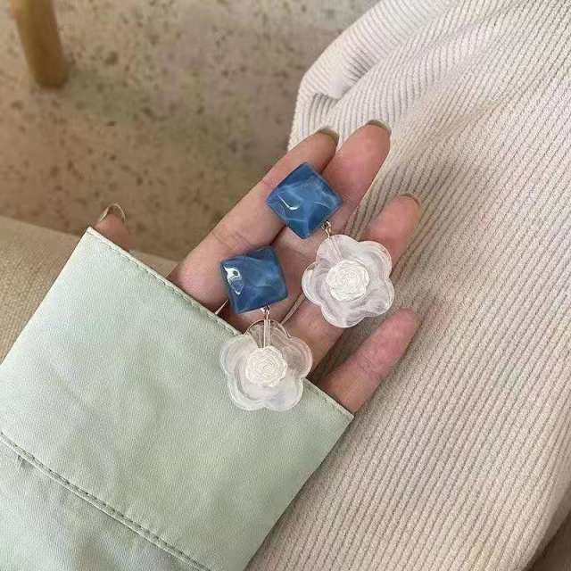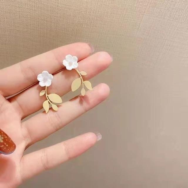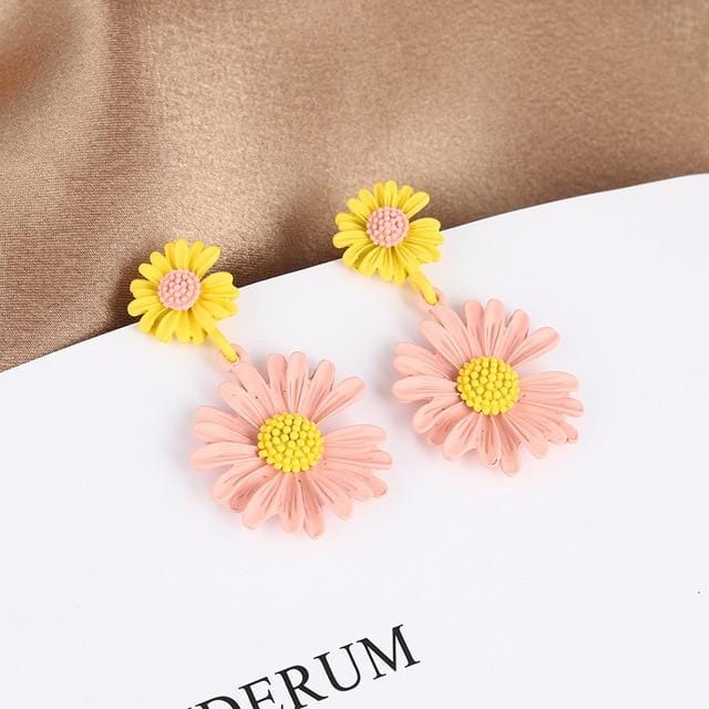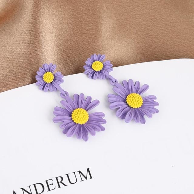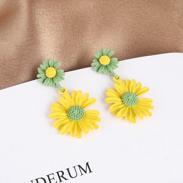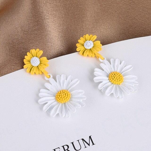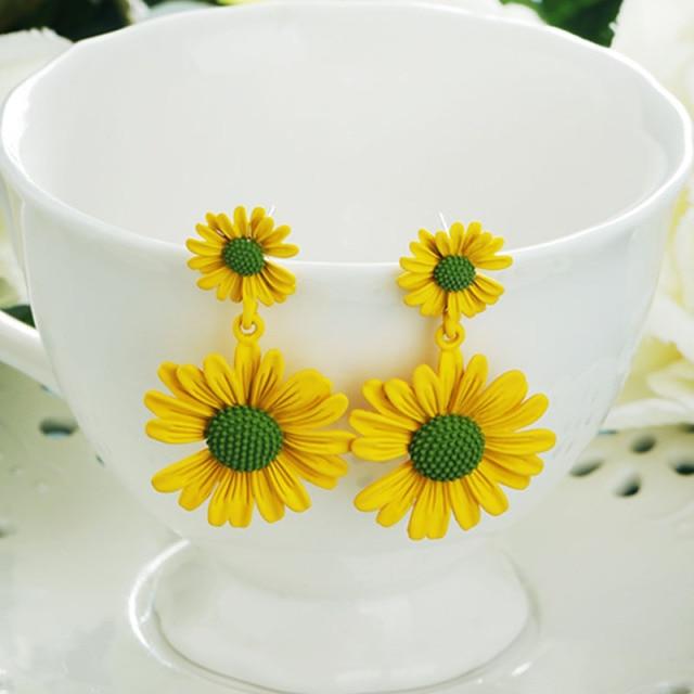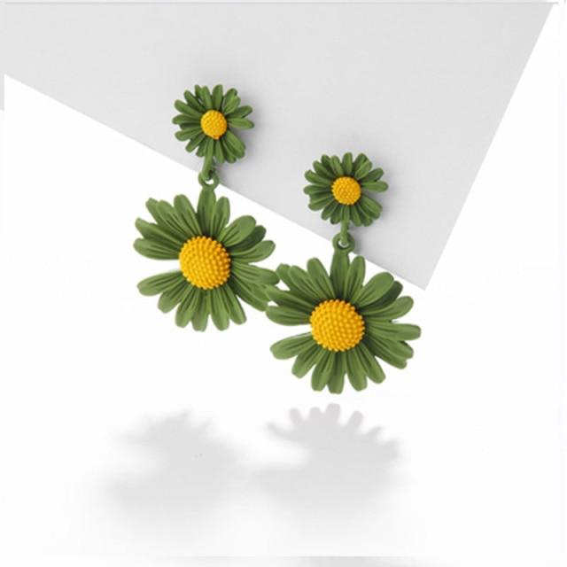 Long flower earrings 2020 new wave shape asymmetric delicate small daisy earrings female ear jewelry Fashion Stud Earrings