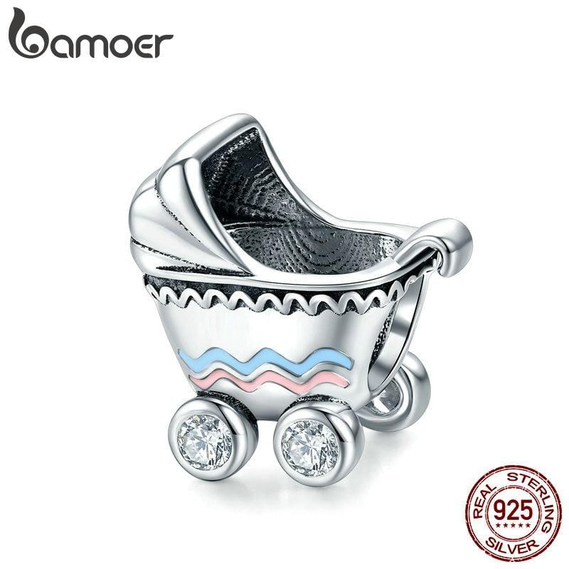 bamoer Authentic 925 Sterling Silver Life Baby Carriage Metal Beads Charm for Bracelet Baby Birthday Gift Anti-allergy SCC1539