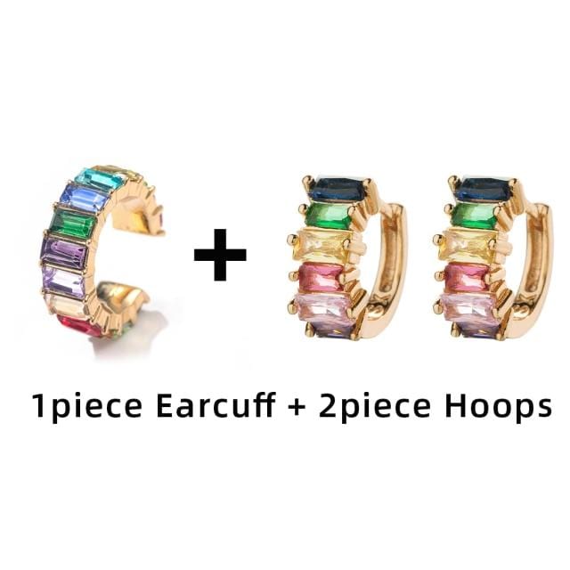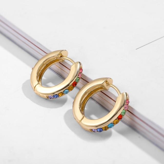 Fashion Colorful Crystal Small Hoop Earrings Clear CZ Geometric Circle Huggie Earrings For Women Jewelry