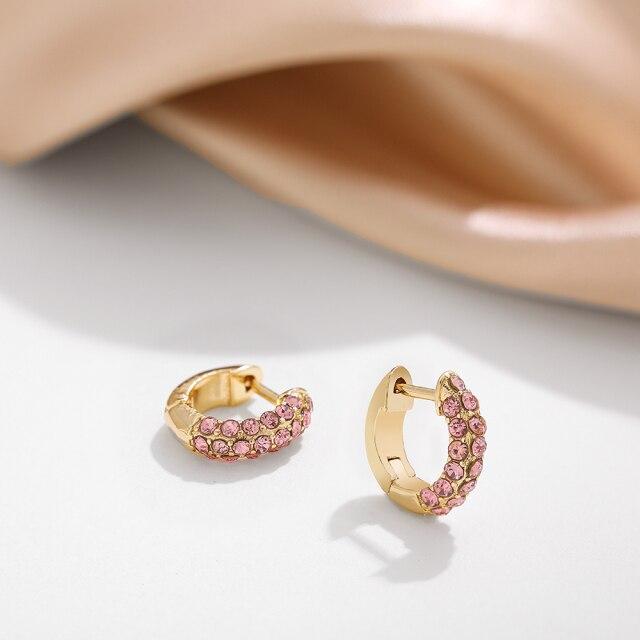 Fashion Crystal CZ Hoop Earrings for Women Simple Gold Round Huggies Ear Buckle Cartilage Earring Wedding Piercing Jewelry Gifts
