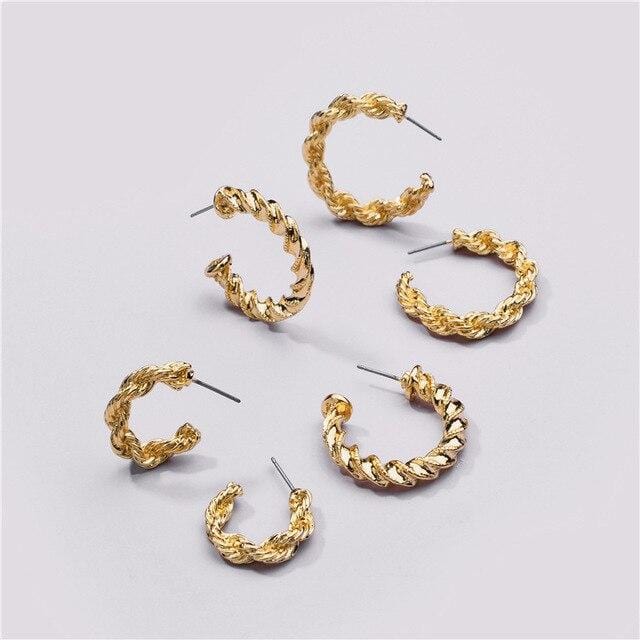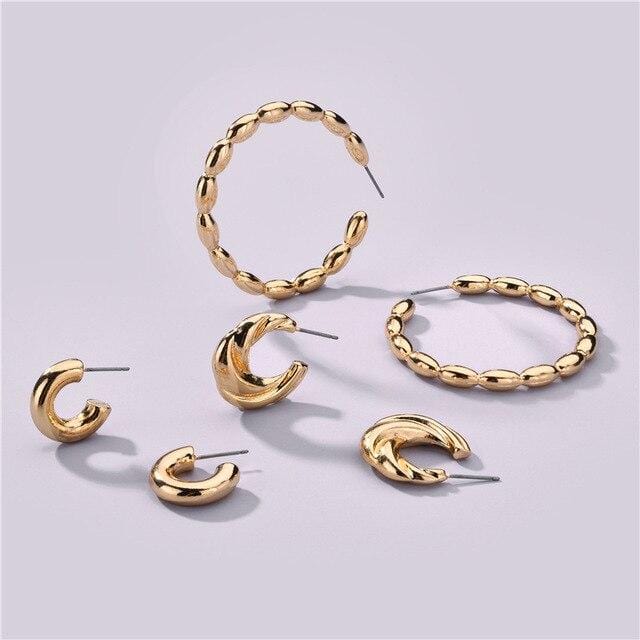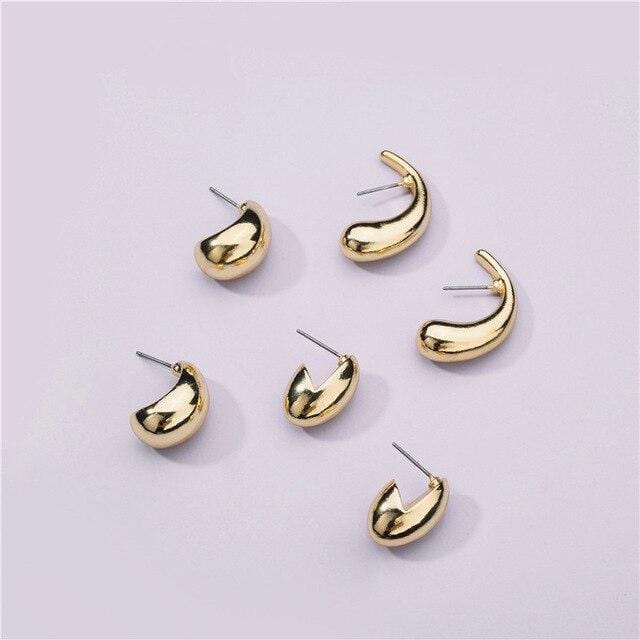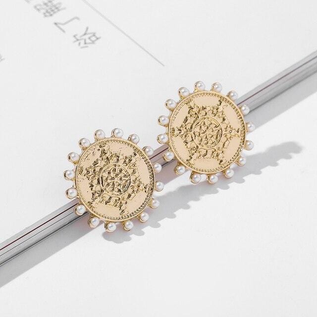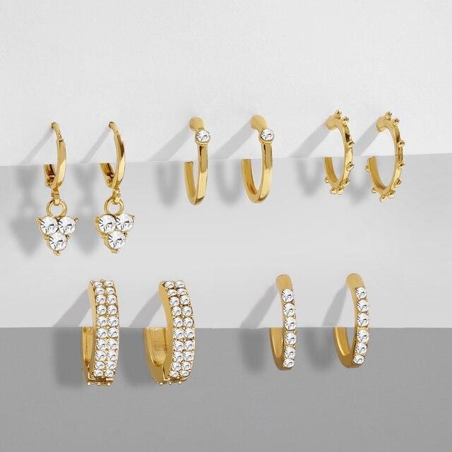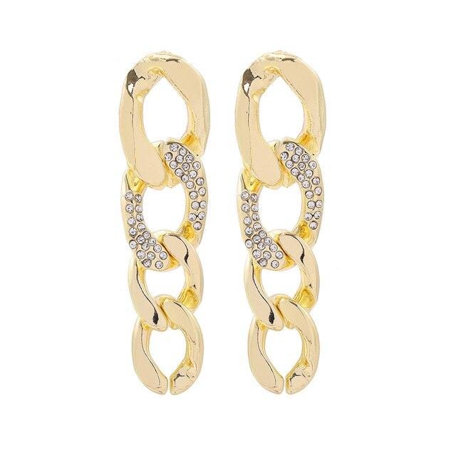 Fashion Gold Metal Long Chain Drop Earrings Punk Style Rhinestone Round Statement Earrings Huggies Ear Pins Piercing Jewelry