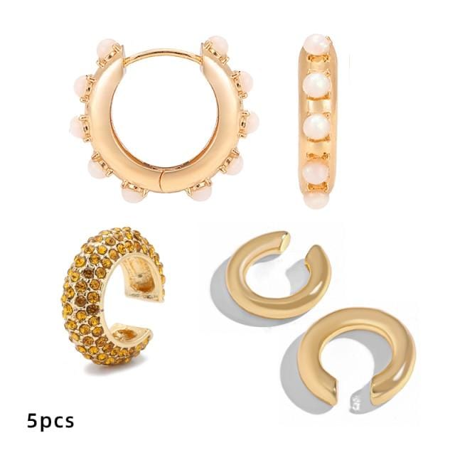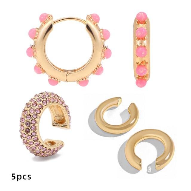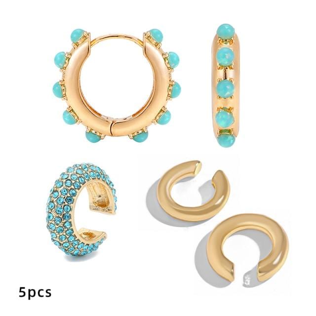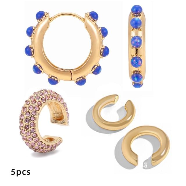 New Fashion CZ Crystal Small Hoops Ear Cuff Set for Women Girls Trendy Gold Huggie Earrings Earcuff Trendy Jewelry Brincos 2021