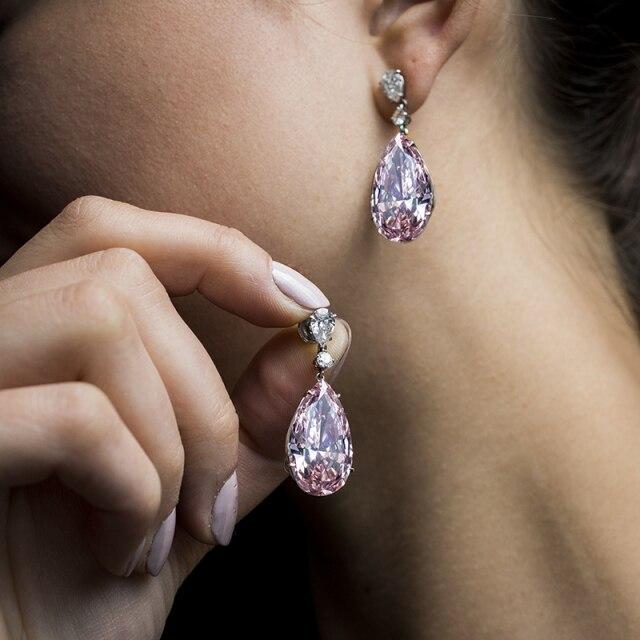 Huitan Cute Drop Earrings with Brilliant Teardrop Cubic Zirconia Pink/Blue Colors Fashion Versatile Women Earrings 2021 Trends