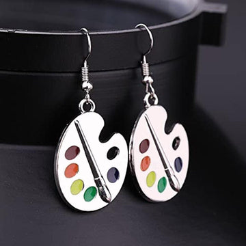 Huitan Fashion Palette Shape Women Drop Earring Brushes and Five-color Paints Personality Girl Earring Unique Gift for Painter