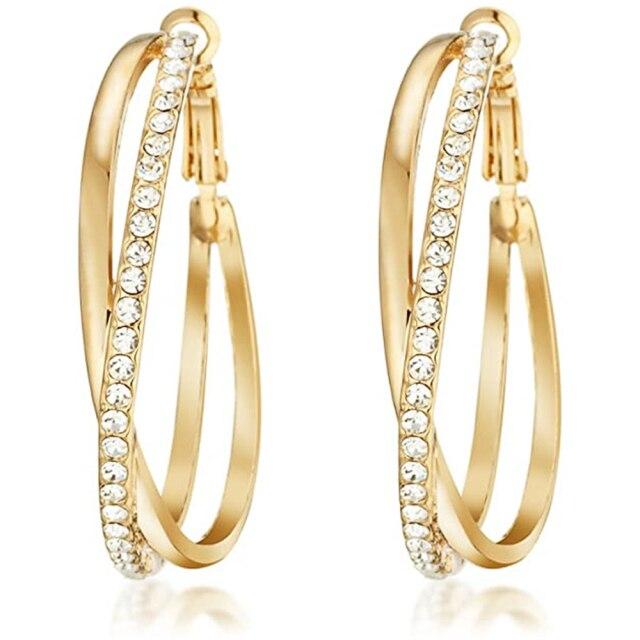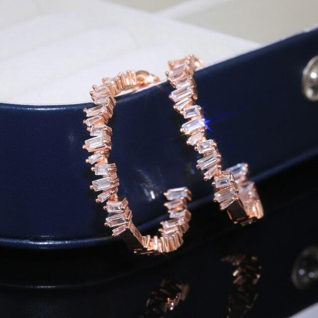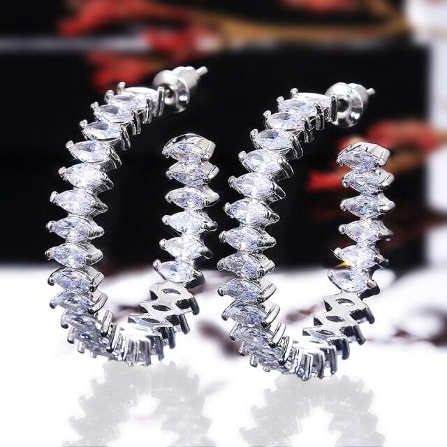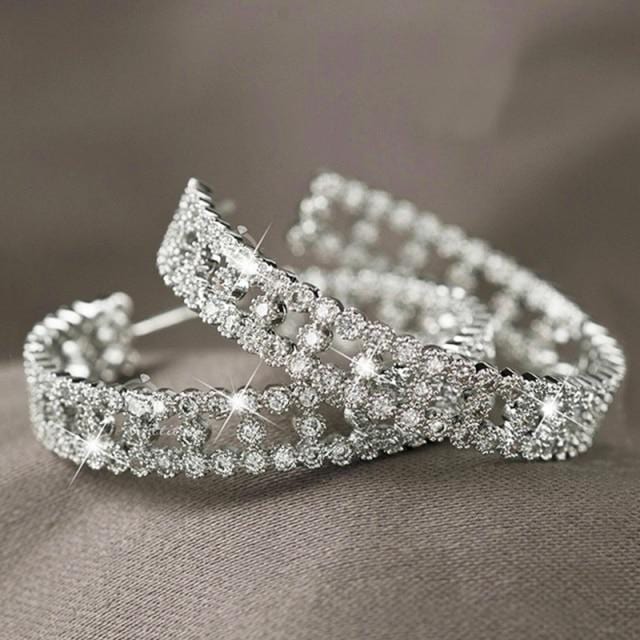 Huitan Hiphop Style Big Circle Hoop Earring for Women Inlaid Crystal Cubic Zirconia Shiny Versatile Female Jewelry Drop Shipping