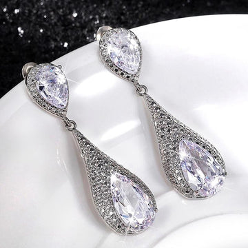 Huitan Luxury Long Hanging Drop Earrings for Women Pear Shape Crystal CZ Elegant Female Accessories High Quality Fashion Jewelry