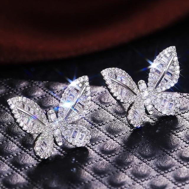 Huitan Luxury Silver Color Crystal Zircon Butterfly Women Earrings Fashion Jewelry Top Quality Hot Sale Lady Earring Best Gifts