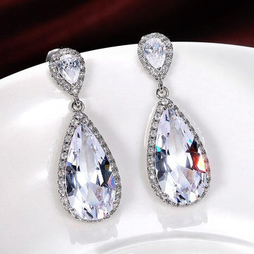 Huitan Luxury Silver Color Dangle Earrings for Women Water Drop Cubic Zirconia Crystal Earrings High Quality Statement Jewelry