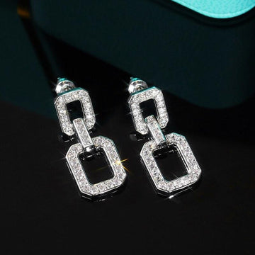 Huitan Luxury Silver Color Women Dangle Earrings Geometric Shape Brilliant Party Jewelry Elegant Daily Wear Statement Earrings