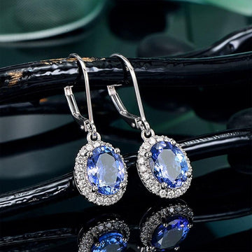 Huitan Luxury Women Drop Earrings Oval Blue CZ Noble Lady's Accessories Party Elegant Female Earrings Daily Wear Fashion Jewelry