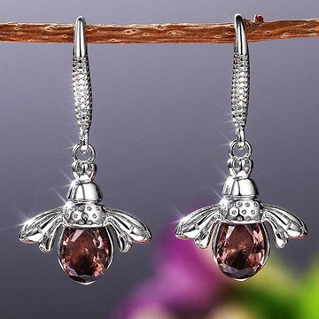 Huitan Personality Animal Women Earrings Funny Bee Dangle Earring Silver Color with Brown Stone Female Gift Statement Jewelry