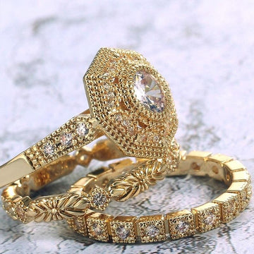 Huitan Romantic Geometric 3PC Ring Sets For Women With Different Shaped Cubic Zircon Stone Settings Luxury Engagement Rings