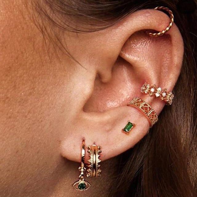 Huitan Stylish 6Pcs/Set Single Ear Rings for Women Delicate Clip Cuff Shiny CZ Stud Eye Shape Drop Earring Female Trendy Jewelry