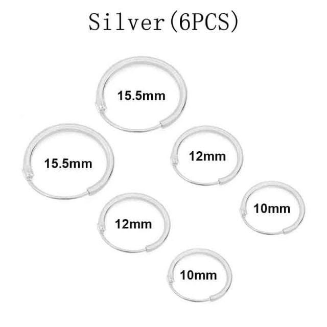 6Pcs 10/12/15.5mm Mixed Small Circle Hoop Earrings for Women Men Punk Ear Clip Jewelry Golden Silver Color Hoop Stud Earrings