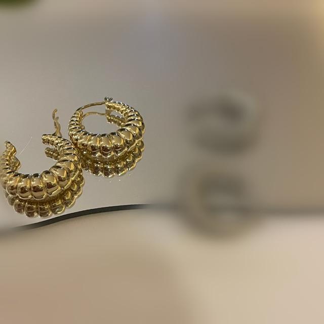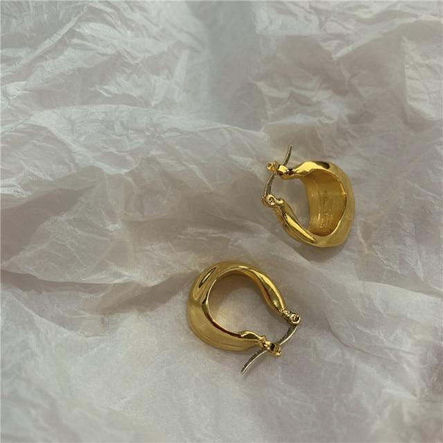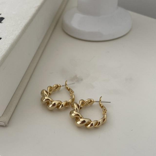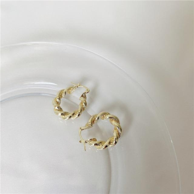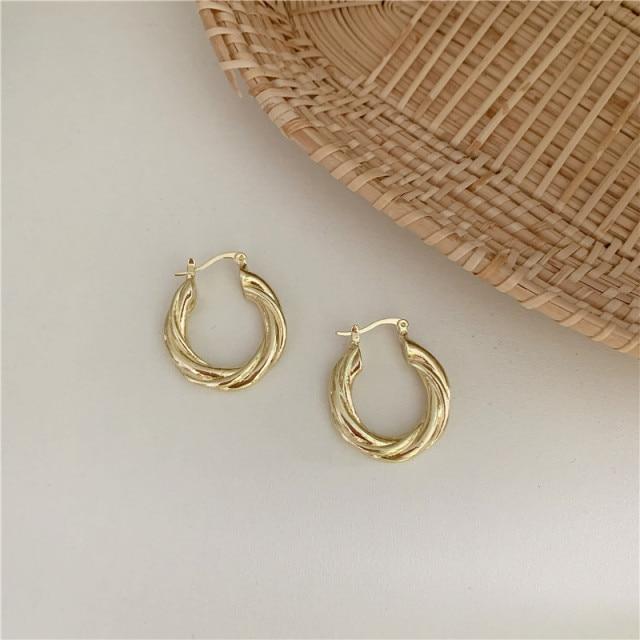 AOMU 2020 New French Retro Metal Gold Color Twist Thread Hoop Earrings Ear Buckle for Female Fashion Simple Jewelry Gifts