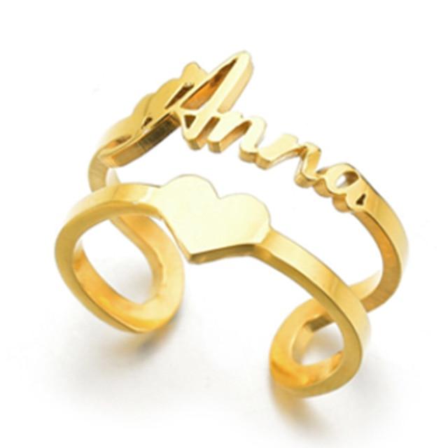 Letdiffery Personlizd Double Name Rings Stainless Steel Adjustable Women Wedding Rings Unique Engagement Gifts