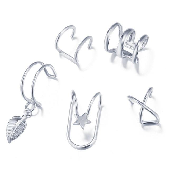 New 5-piece set of ear clips 2020 fashion gold women's ear bag leaf clip earrings factory wholesale