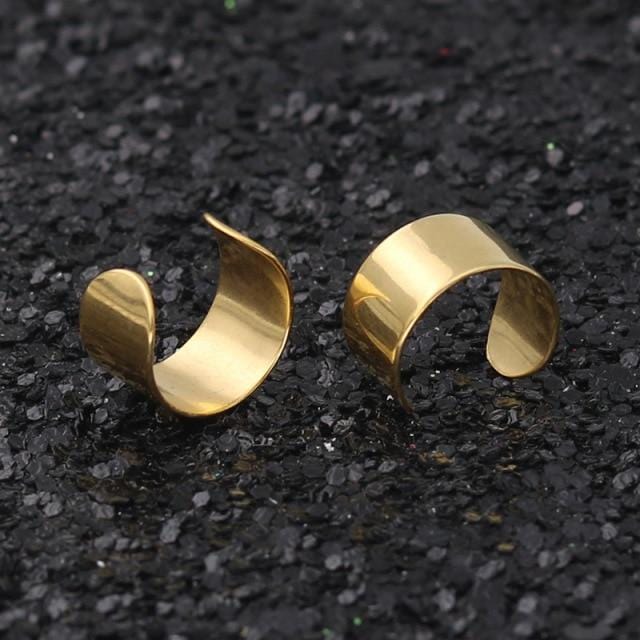 Simple Creative Pierced Ear Cuffs Punk Stainless Steel Gold Silver Color Clip Earrings Women Men Hip Hop Earrings Brincos