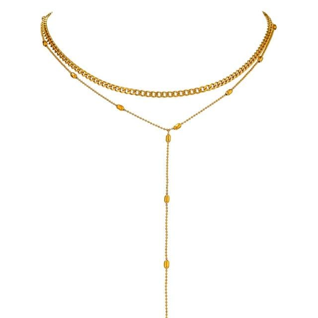 Yhpup Exquisite Layered Long Pendant Stainless Steel Necklace Charm Metal подвеска Choker Necklace Stylish Jewelry Office Gift