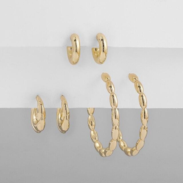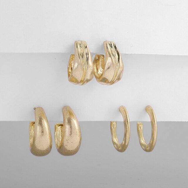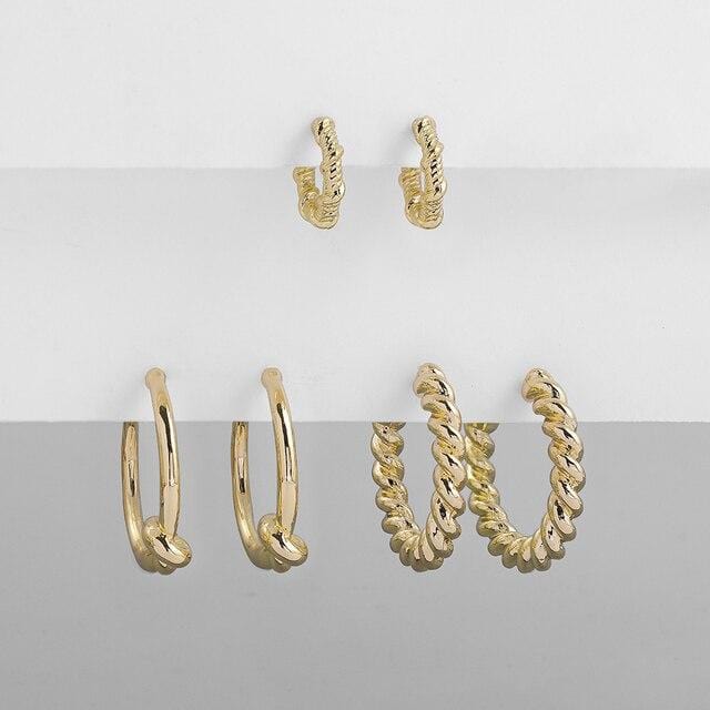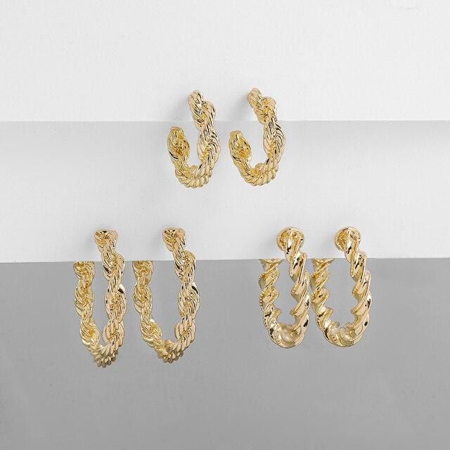 3pair/set New Design Geometric Twisted Earring for Women Gold Color Big Round Circle C Shape Hoop Earrings Female Simple Jewelry