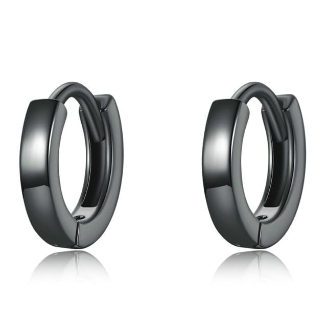 bamoer New 925 Sterling Silver Black Gold Ear Buckles Simplicity Hoop Earrings Korean for Women Men DIY Fashion Jewelry SCE1230