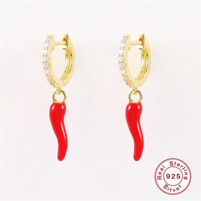 Funny Red Chili Shape Enamel Hoop Earrings For Women Girl Pendientes Plata 925 Creative Sexy Earrings Gifts Daily Female Jewelry