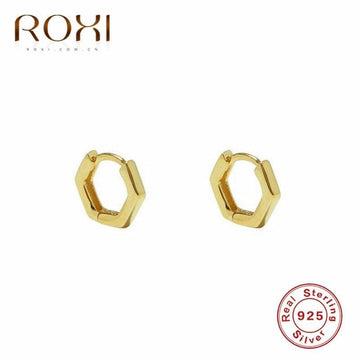 ROXI 925 Sterling Silver Jewelry Hexagonal Geometric Hoop Earrings for Women Girls Pendientes Party Gift Earrings Oorbellen