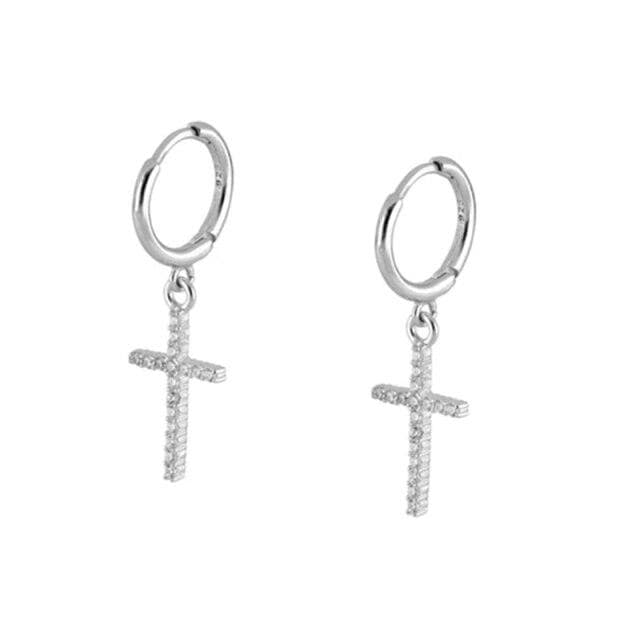 ROXI Career Cross Glossy Hoop Earrings for Women Shiny Drop Crystals Zircon 925 Sterling Silver Earrings Wedding Jewelry Brincos