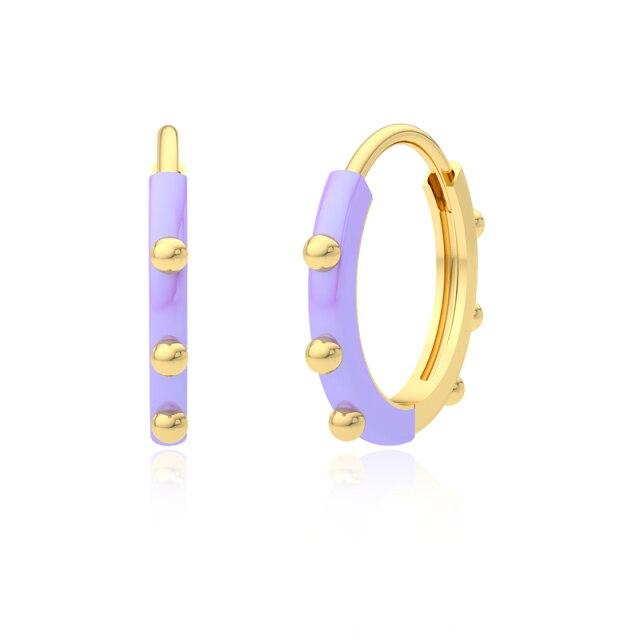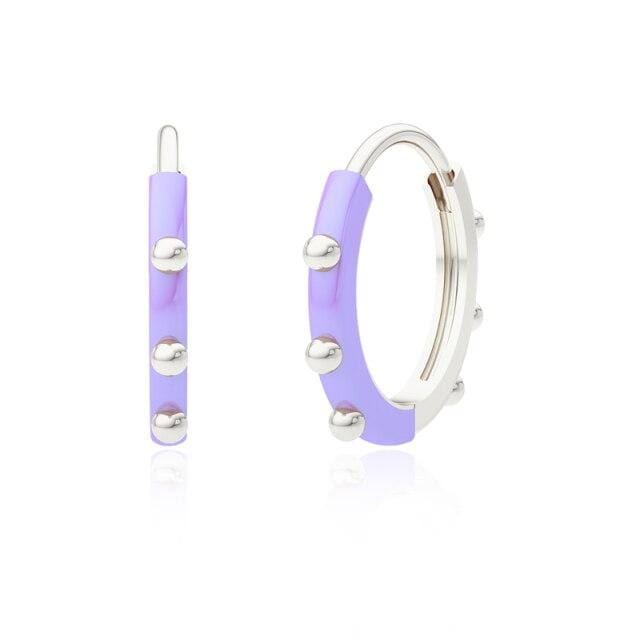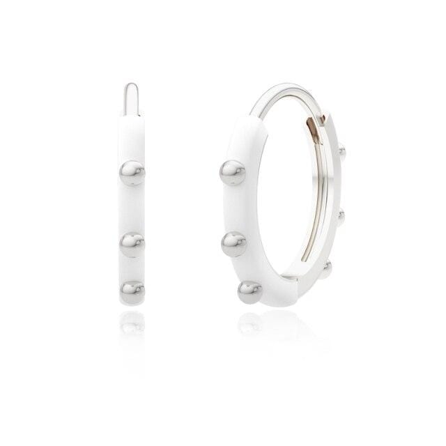 ROXI Colorful Enamel Rivets Hoop Earrings for Women Girls Fashion Jewelry Earrings 925 Sterling Silver Round Huggie Earring Aros