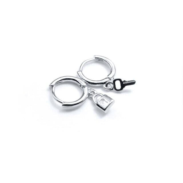 ROXI Creative Lock Key Asymmetry Hoop Earrings for Women Men Wedding Jewelry Cartilage Earrings 925 Sterling Silver Pendientes