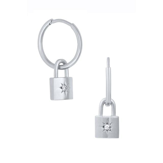ROXI Drop Glossy Lock Crystals Stars Hoop Earrings for Women 925 Sterling Silver Jewelry Wedding Earring Cartilage Pendientes