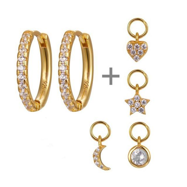ROXI Hoop Earrings for Women Pendant Heart Star Moon Round Crystals Earrings 925 Sterling Silver Cartilage Jewelry Pendientes