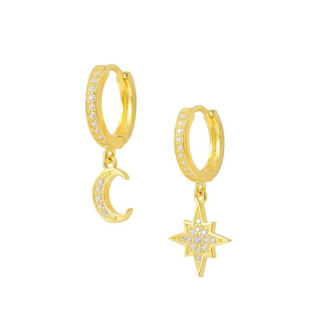 ROXI Multible Colorful Crystal Hoop Earrings for Women 925 Sterling Silver Star Moon Animal Huggie Earring Jewelry Gold Earrings