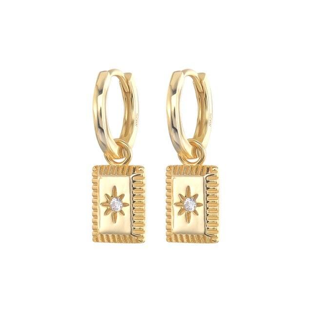 ROXI Rectangle Earrings for Women Girls Zircon Crystals Stars 925 Sterling Silver Hoop Earrings Pendientes Punk Huggie Earring