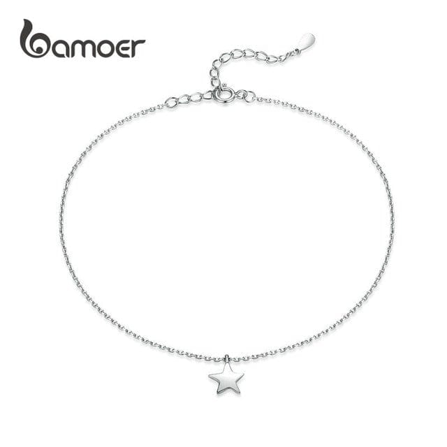 BAMOER Hot Sale Simple Essential Bead Link Anklets 925 Sterling Silver Bracelet for Foot Jewelry Silver Female Leg Chain SCT002
