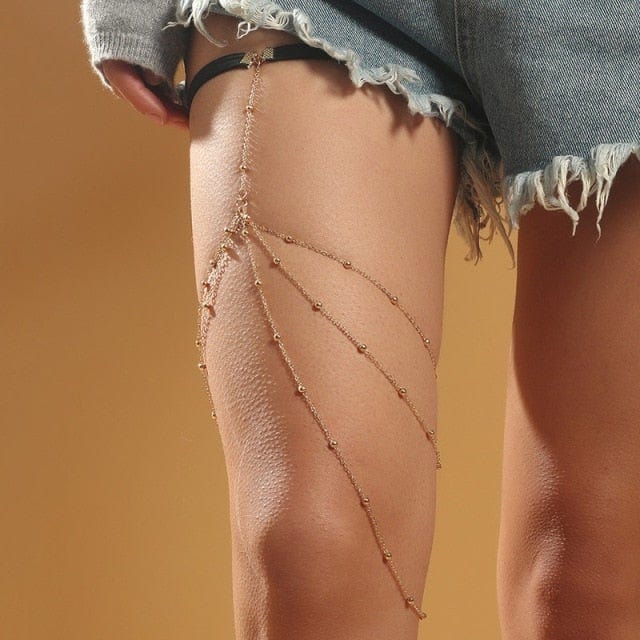 Bohemian Boho Gold Color Metal Beaded Chain Thigh Chain For Women Big Snake Pendants Leg Chain Body Jewelry Beach Style Gift