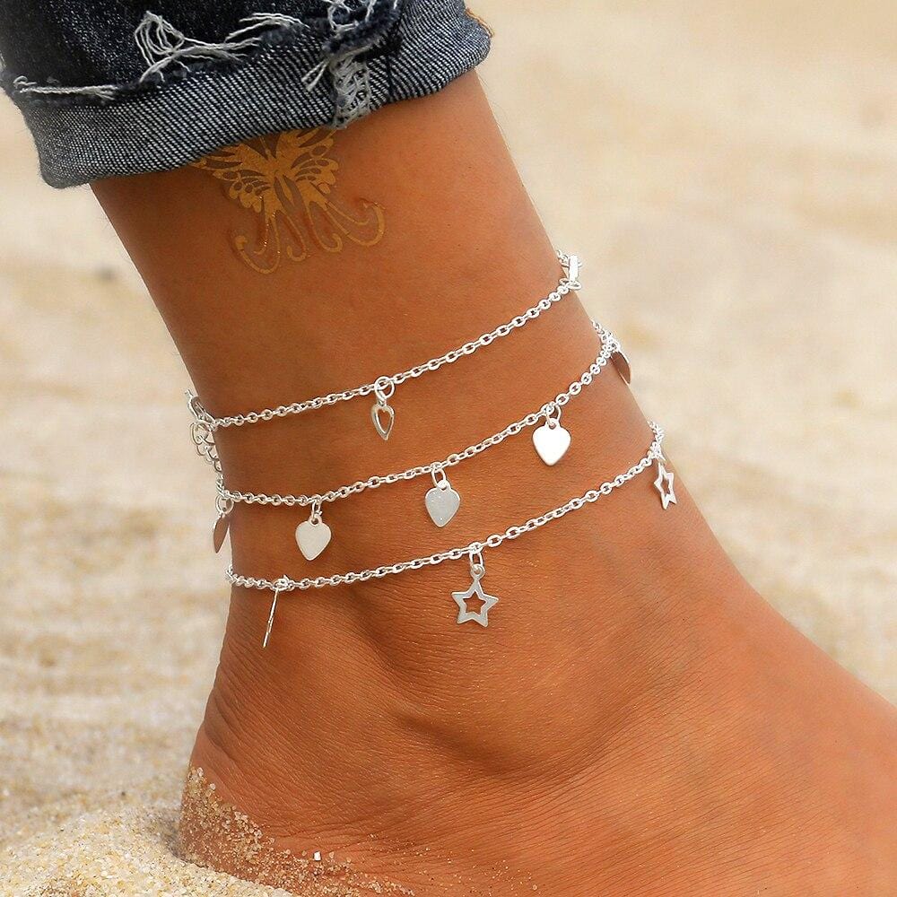 FNIO Bohemian Silver Color Anklet Bracelet On The Leg Fashion Female Anklets Barefoot For Women Leg Chain Beach Foot Jewely