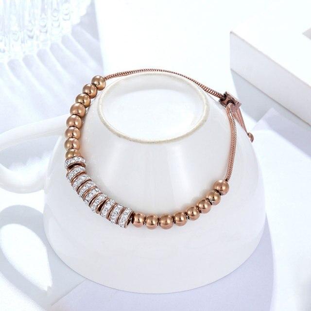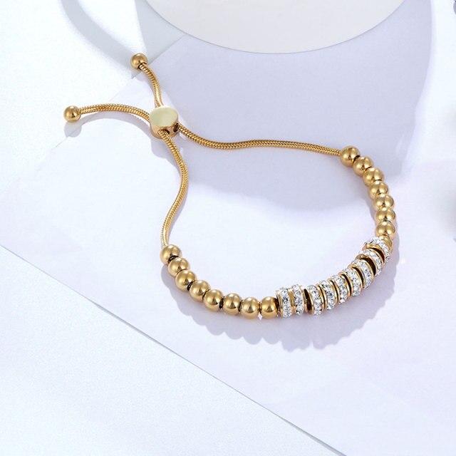 Beautiful Beads And 9 Zircon Circle Bracelet Adjustable Size Stainless steel Jewelry For Women Love Gift