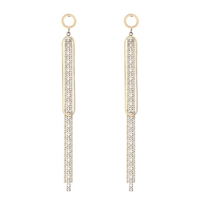 Beautiful Circle Hanging Two Box Chain And Shiny Full Zircon Chain Woman Drop Earring Stainless Steel Light Gold Color Earring