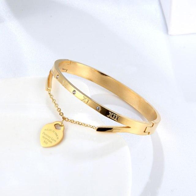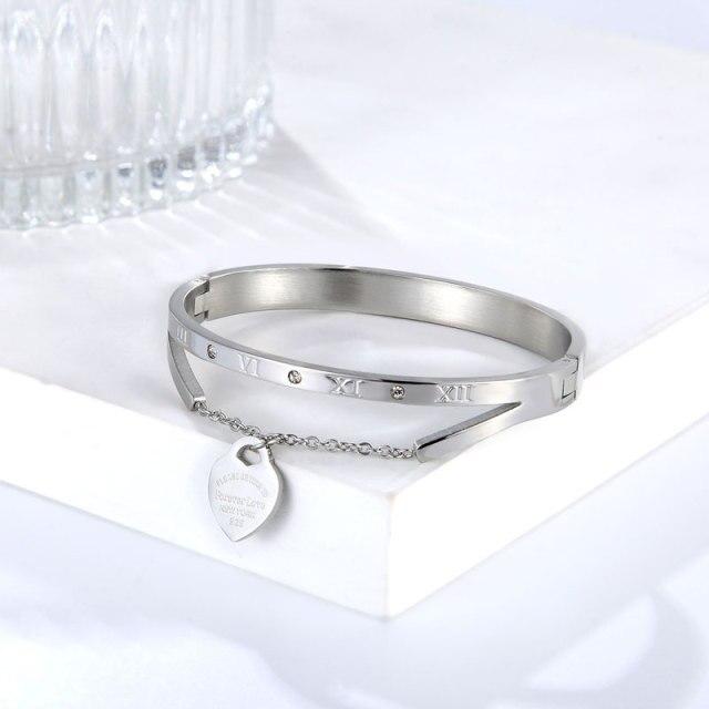 Beautiful Hang Carving Forever Love Heart Shaped Bangle Top Quality Titanium Steel Woman Love Brand Jewelry Gift Pulsera