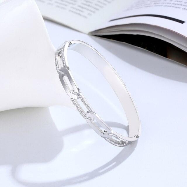 Exquisite Zircon Chain Shape Bracelets & Bangle Stainless Steel Woman Trendy Brand Bangle Gold Plated Jewelry Pulseira Wholesale
