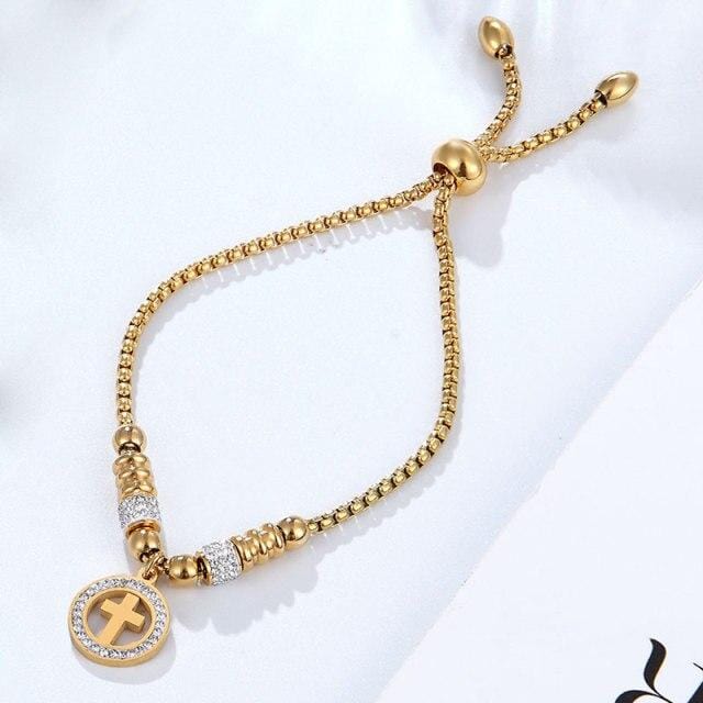 New Design Circle Cross Charm Women Bracelet Titanium Steel Gold Plating Jewelry Bracelet for Gift Pulseiras