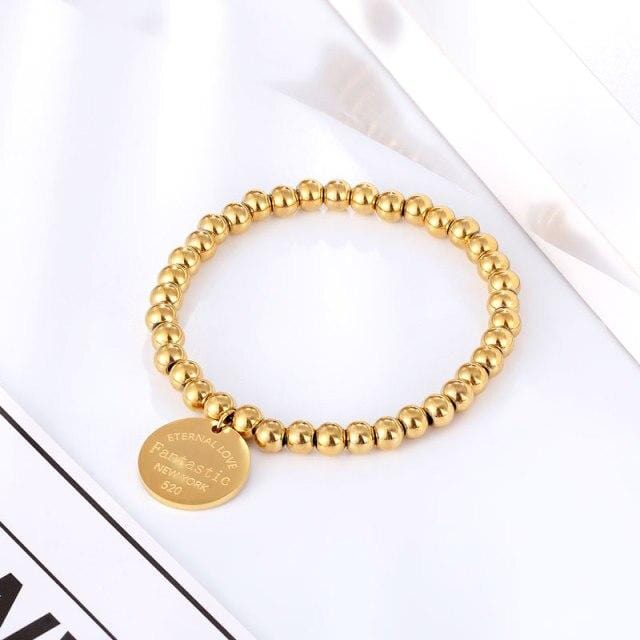 New Stainless Steel Elastic Rope Bead Bracelet for Women Round Charm Famous Brand Engraving Fantastic Bracelet Love jewelry