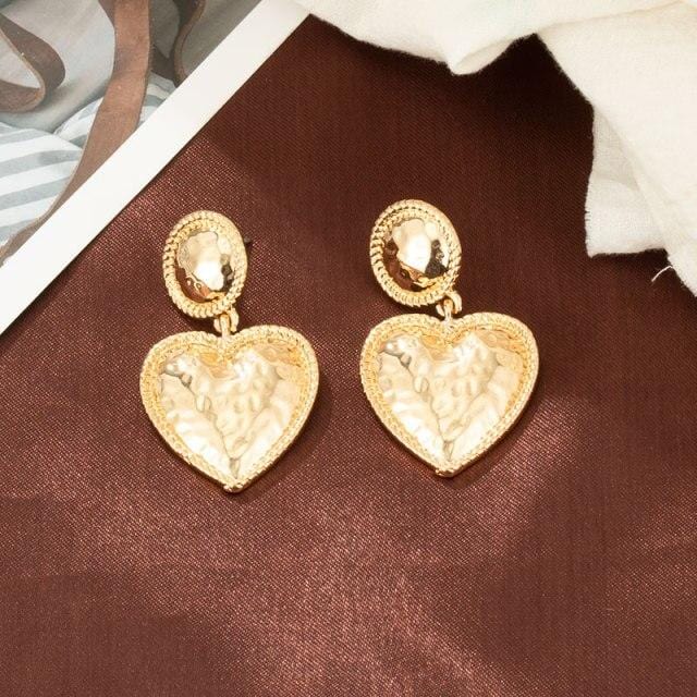 Fashion Luxury Statement Heart Earrings For Women Gold Metal Geometric Hanging Earrings 2021 Trend Female Modern Wedding Jewelry