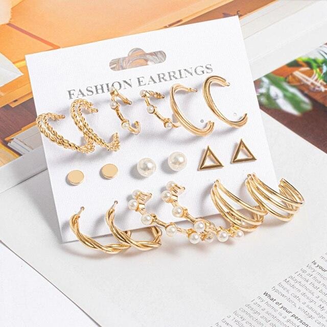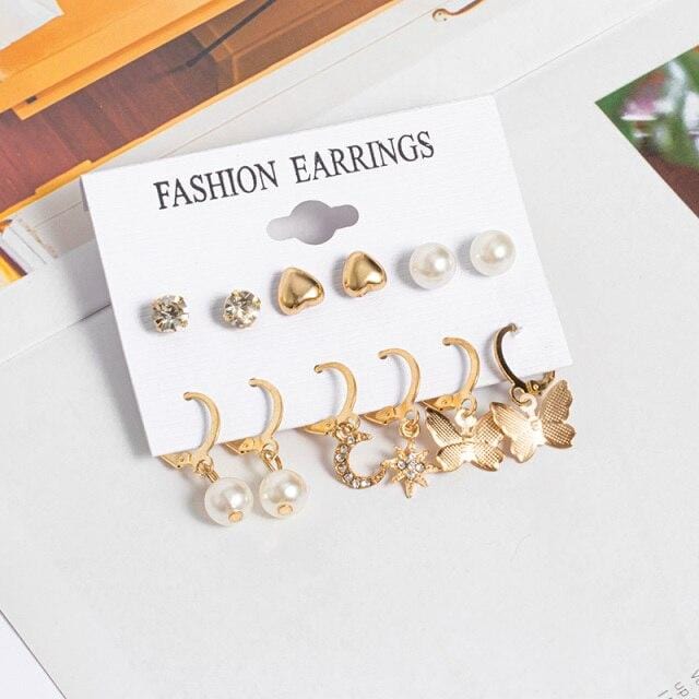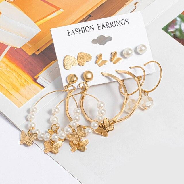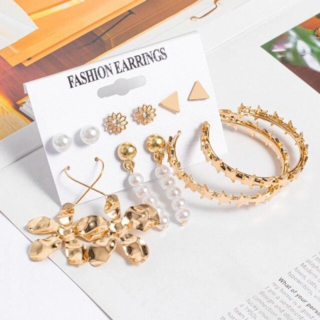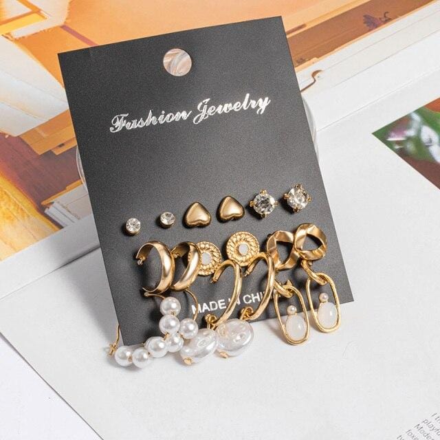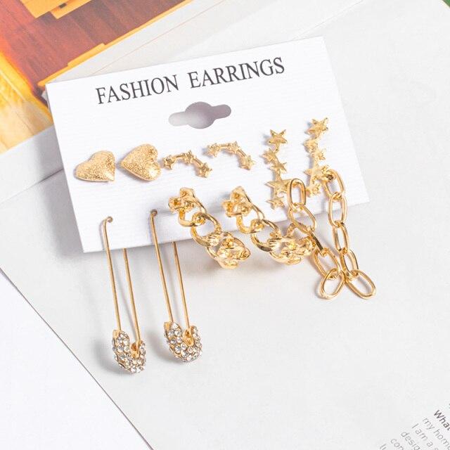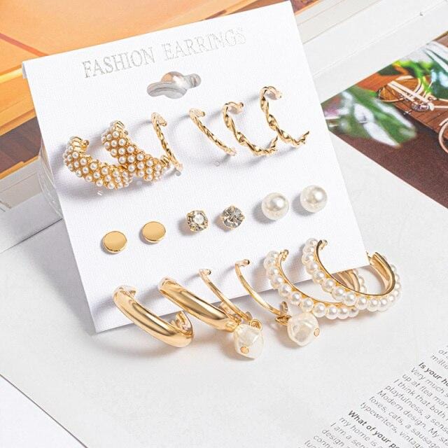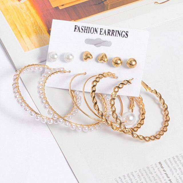 Fashion Pearl Hoop Heart Earrings Sets For Women Stud Geometirc Statement Gold Metal Hanging Earrings 2021 Trend Modern Jewelry