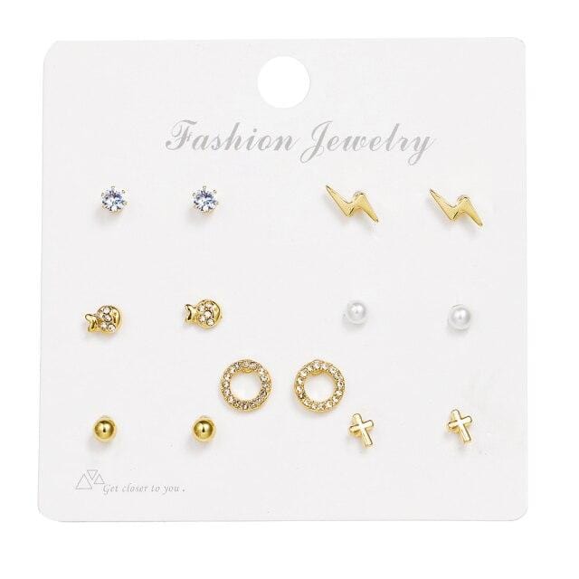 FNIO Fashion Statement Earrings 2021 Geometric Earrings For Women Stud Earrings Set Modern Female Jewelry