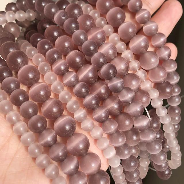Natural Moon Stone Beads White Cat Eye Round Loose Beads 4/6/8/10/12mm Jewelry Making DIY Bracelet 15" Strand