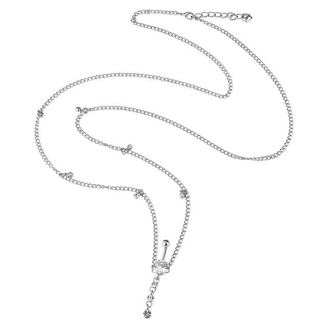 Women Sexy Rhinestone Dangle Belly Button Chain Navel Piercing Ring Body Jewelry Waist Chain Button Puncture Jewelry